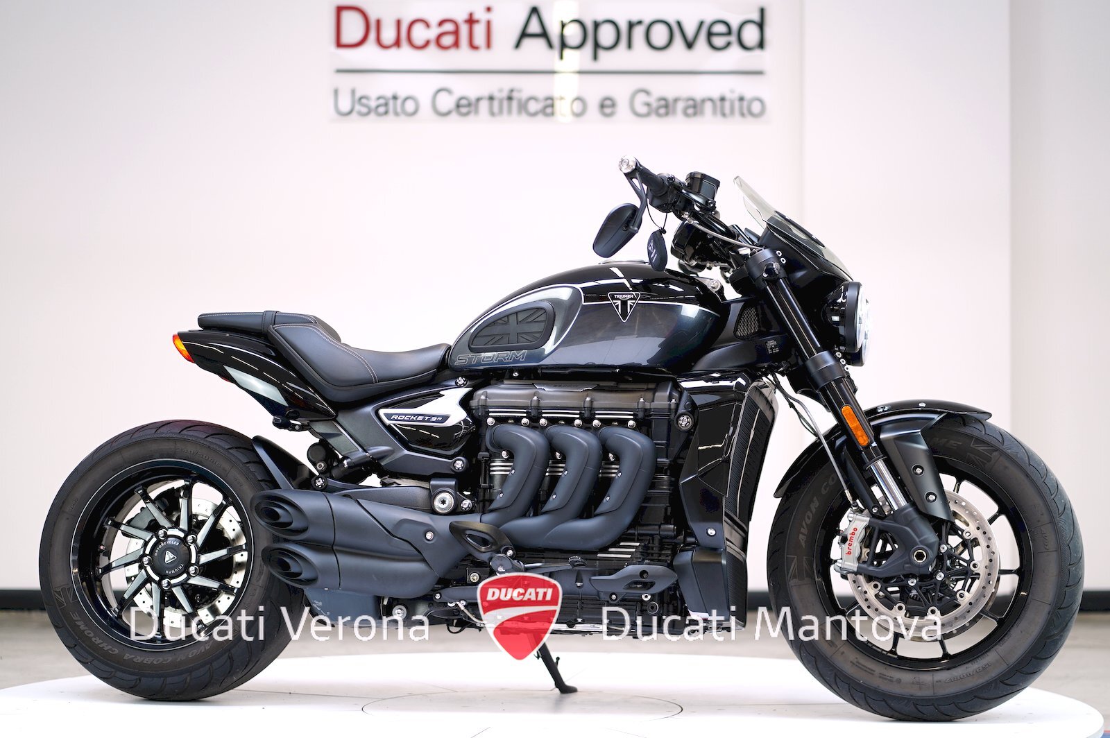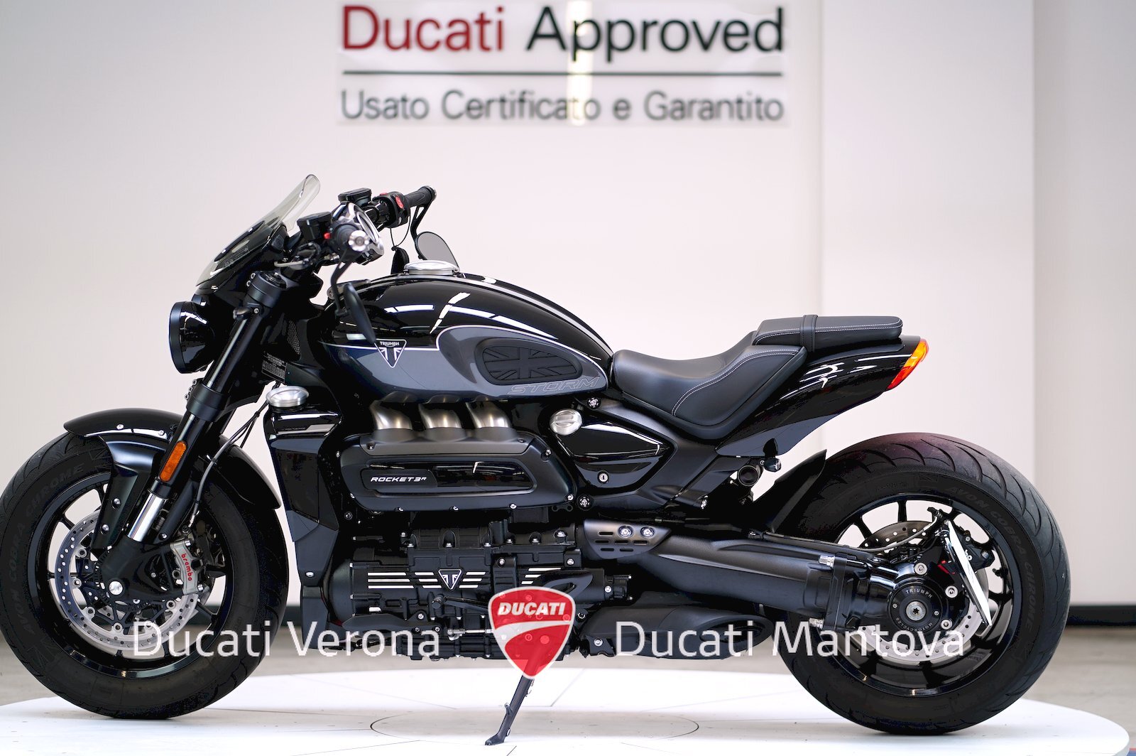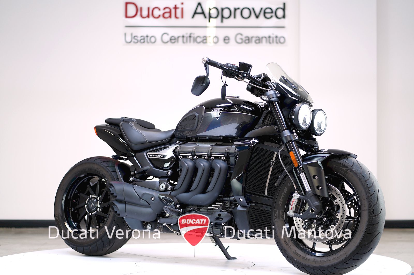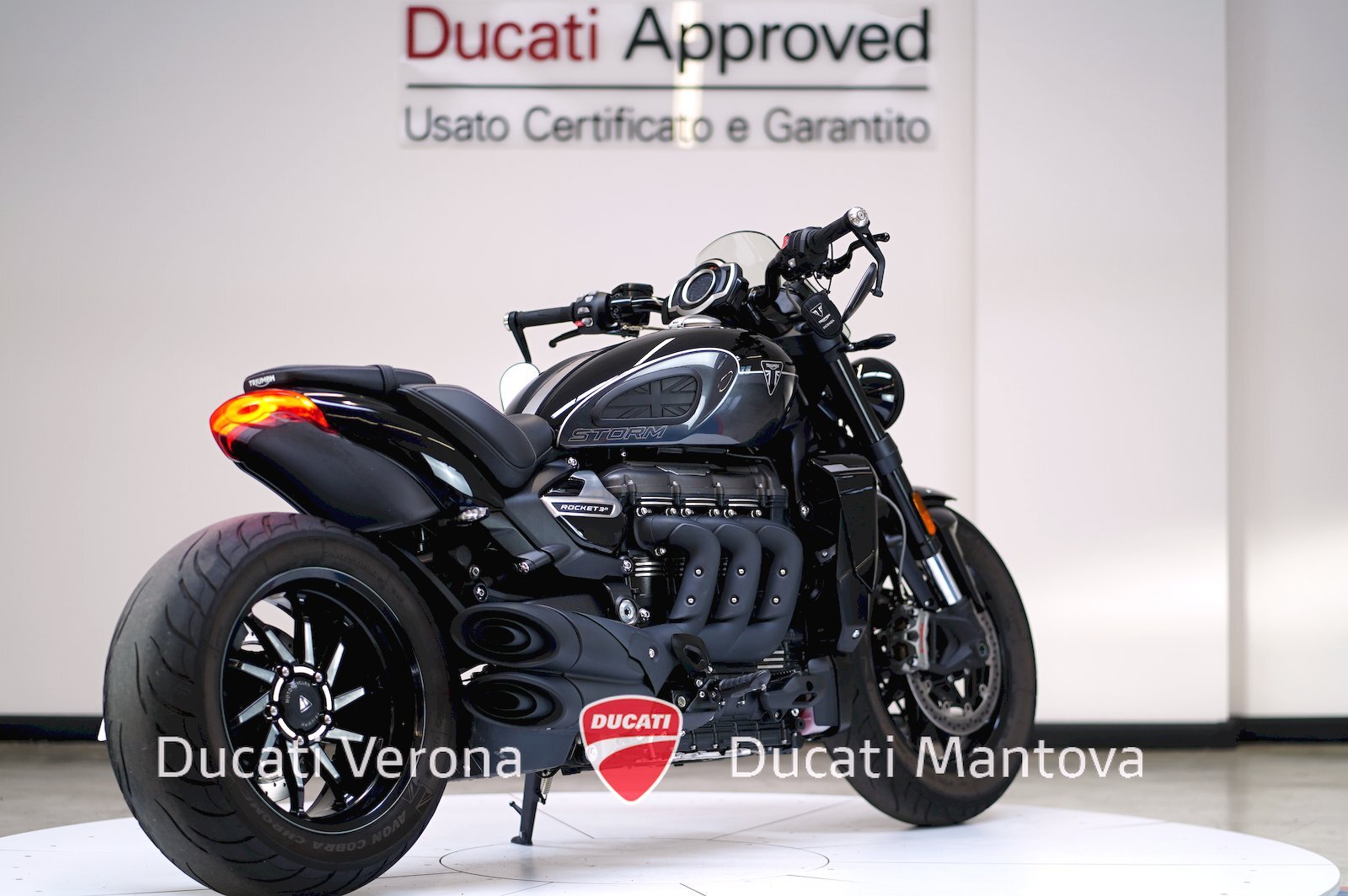 Ducati Verona, Dealer Esclusivo per Verona e Mantova dal 1999, propone l'evoluzione definitiva del mito: la Triumph Rocket 3 Storm R. Immatricolata ad Aprile 2024, questo modello rappresenta l'apice della gamma Rocket con prestazioni ancora più esasperate e un look "dark" inconfondibile. ⚡